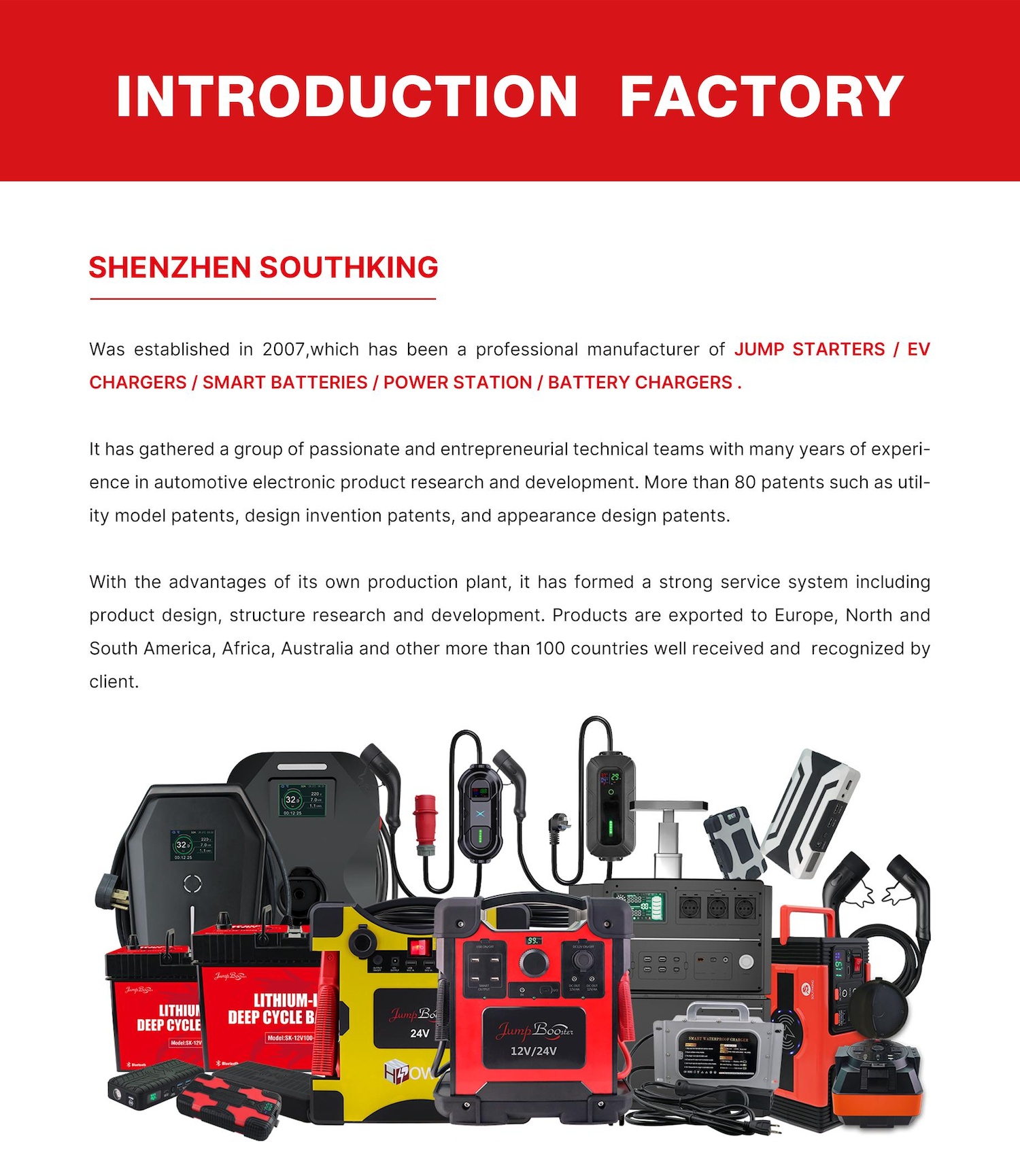 Shenzhen Southking Technology Co.,LTD was founded in 2010, which is a professional manufacturer for Emergency Jump Starters,EV chargers,Smart Batteries,Power Stations,etc.Southking was certificated by IS09001,1S014001,IATF16949 and audited by BSCl,Sedex,etc.